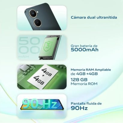 * La duración de La batería esta en horas aproximadas y dependerá del uso que se le de al equipo. *El tamaño de la pantalla del celular se mide en diagonal. * Los espacios para Dual SIM varían según el modelo del celular. Algunos solo poseen 2 ranuras o slots, los cuales puede utilizar para instalar 2 SIMCARD de sus operadores preferidos, o 1 para su SIMCARD y el otro para la memoria expandible.