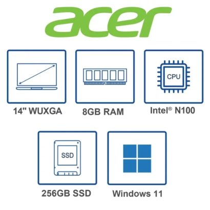 Computador Portátil ACER ASPIRE 14″ Pulgadas C0S2 Intel Celeron – RAM 8GB – Disco SSD 256GB – Plateado
