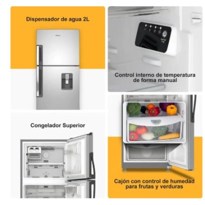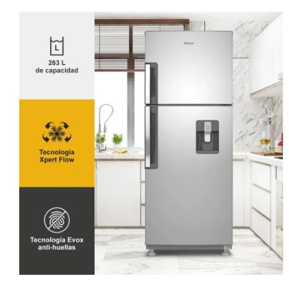 Nevera WHIRLPOOL No Frost Congelador Superior 263 Litros WRW25CKTWW Gris
