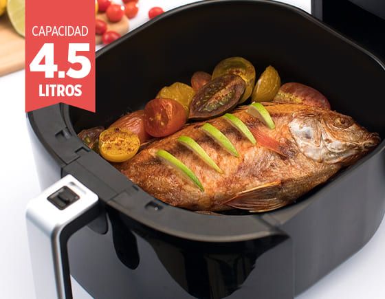 Descubre una forma más rápida y saludable de cocinar: disfruta de tus frituras favoritas con el mismo sabor y textura, pero sin aceite añadido. Con su capacidad de 4.5 litros, prepara porciones generosas de manera uniforme, ideal para hornear, asar o freír con resultados crujientes y deliciosos. ¡La manera inteligente de saborear lo que te encanta, ¡sin culpas!