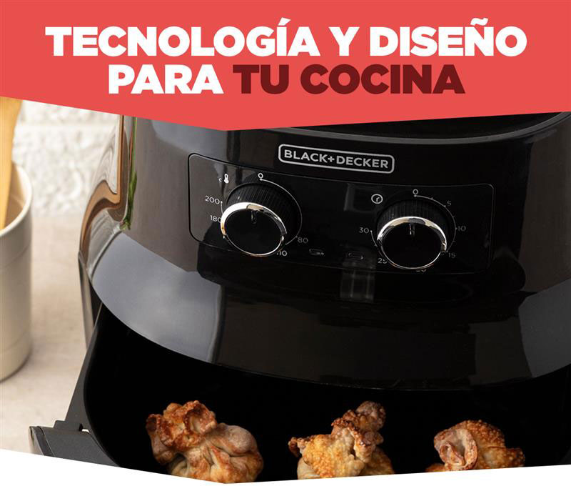 Con la freidora de aire Black+Decker prepara tus platillos favoritos en menos tiempo y no dejes esperando a tus comensales.
