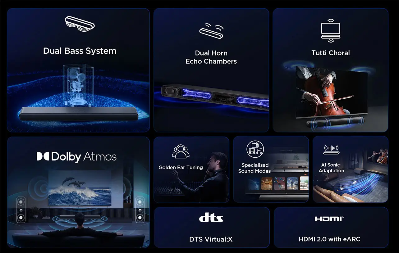 Con el apoyo de Tutti Choral, la colaboración de TCL TV y Soundbar mejora el escenario sonoro vertical, creando una experiencia de audio ascendente estimulante, alcanzando un rendimiento de al menos 2.0.2 canales.