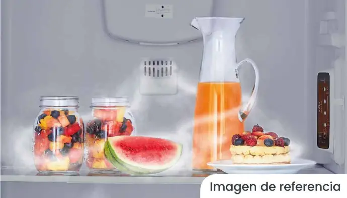 Cuenta con iluminación de gran alcance: mayor visual, menos sombras. Tipo LED y ubicada para ver cada rincón de la nevera.