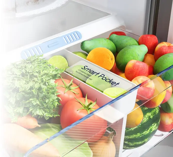 El Smart Pocket es un compartimiento especial que te permite separar y acceder fácilmente a tus frutas y verduras favoritas, ayudándote a mantener tus metas de bienestar.