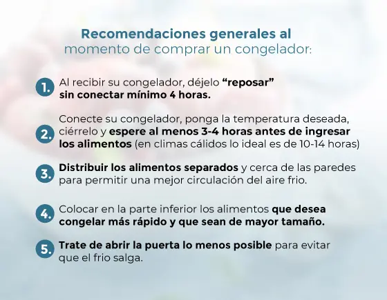 Cuando te llegue tu congelador Kalley debes seguir las 5 recomendaciones que te damos en la imagen para así darle el uso correcto a tu producto.