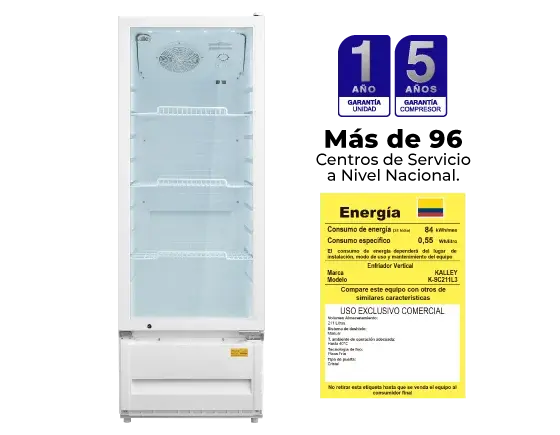 Nevera KALLEY Vitrina Frost Una puerta 211 Litros K-SC211L3 Blanco