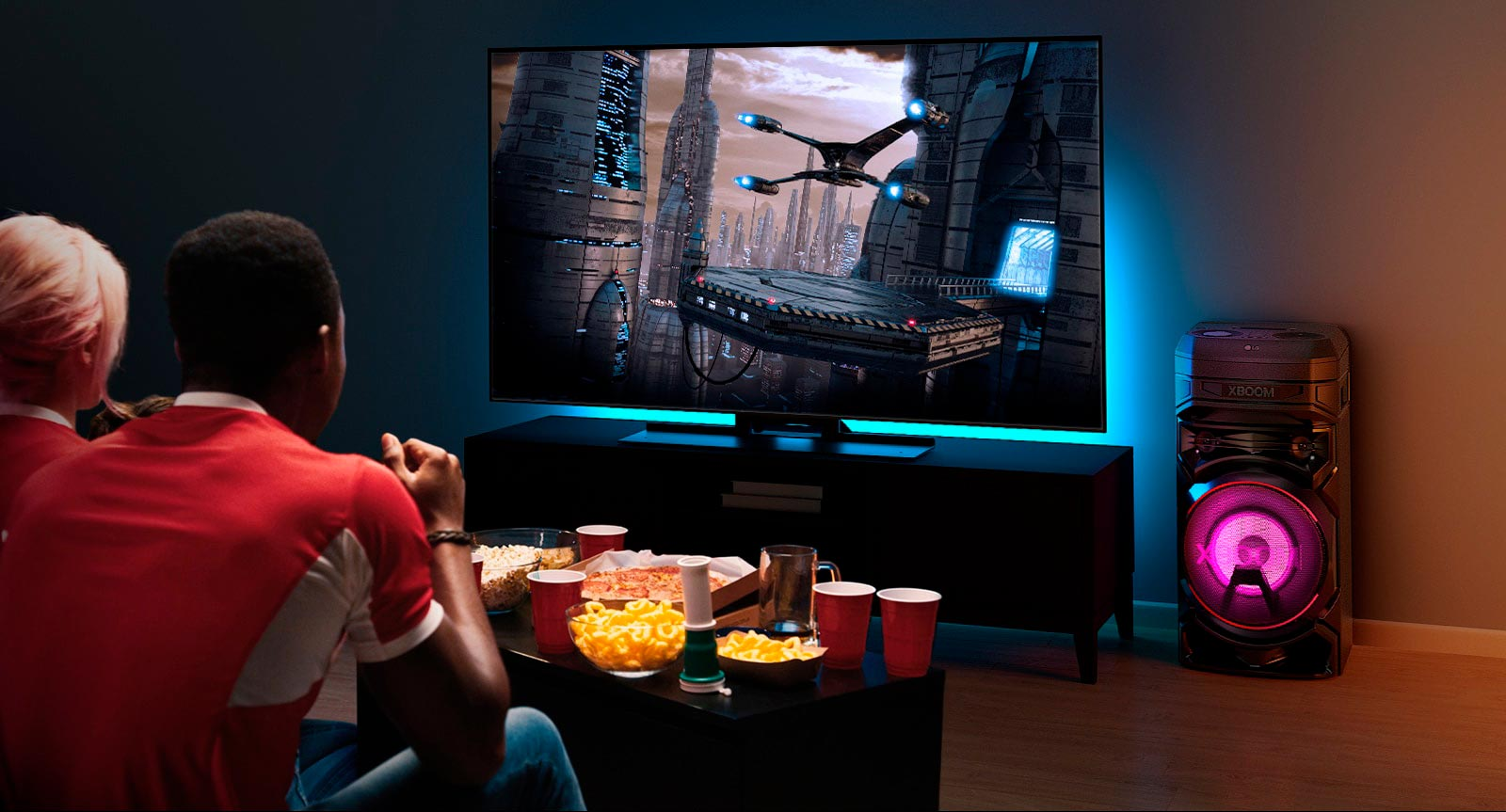 Conecte el RNC5 a su televisor LG mediante cable óptico o Bluetooth® para disfrutar de un sonido más potente y envolvente.
